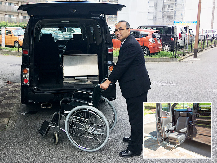もしご希望の際は、ご搬送の申し込みの際にひとことお伝えいただければ車いす対応のお車でお迎えにあがります。